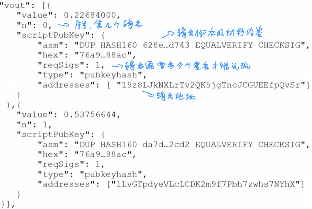 - PUSHDATA(PubKeyHash)**:将输出中提供的